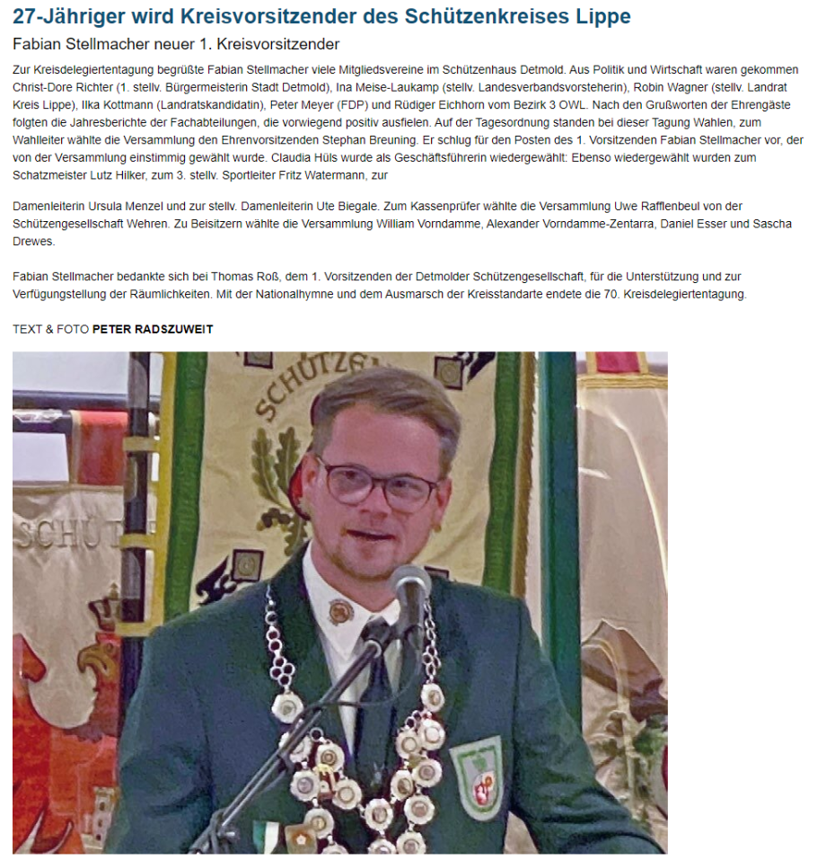 Sie können die Presseberichte im Original lesen, in dem Sie auf den jeweiligen, unter dem Artikel stehenden Button klicken. Es öffnet sich ein neues Fenster und einfach mit der Maus auf den Presseartikel klicken. Auf der rechten Seite geht es zum jeweiligen Presse-Jahresarchiv! Der Schützenkreis Lippe bedankt sich bei seiner heimischen Presse für die jeweilige Berichterstattung!